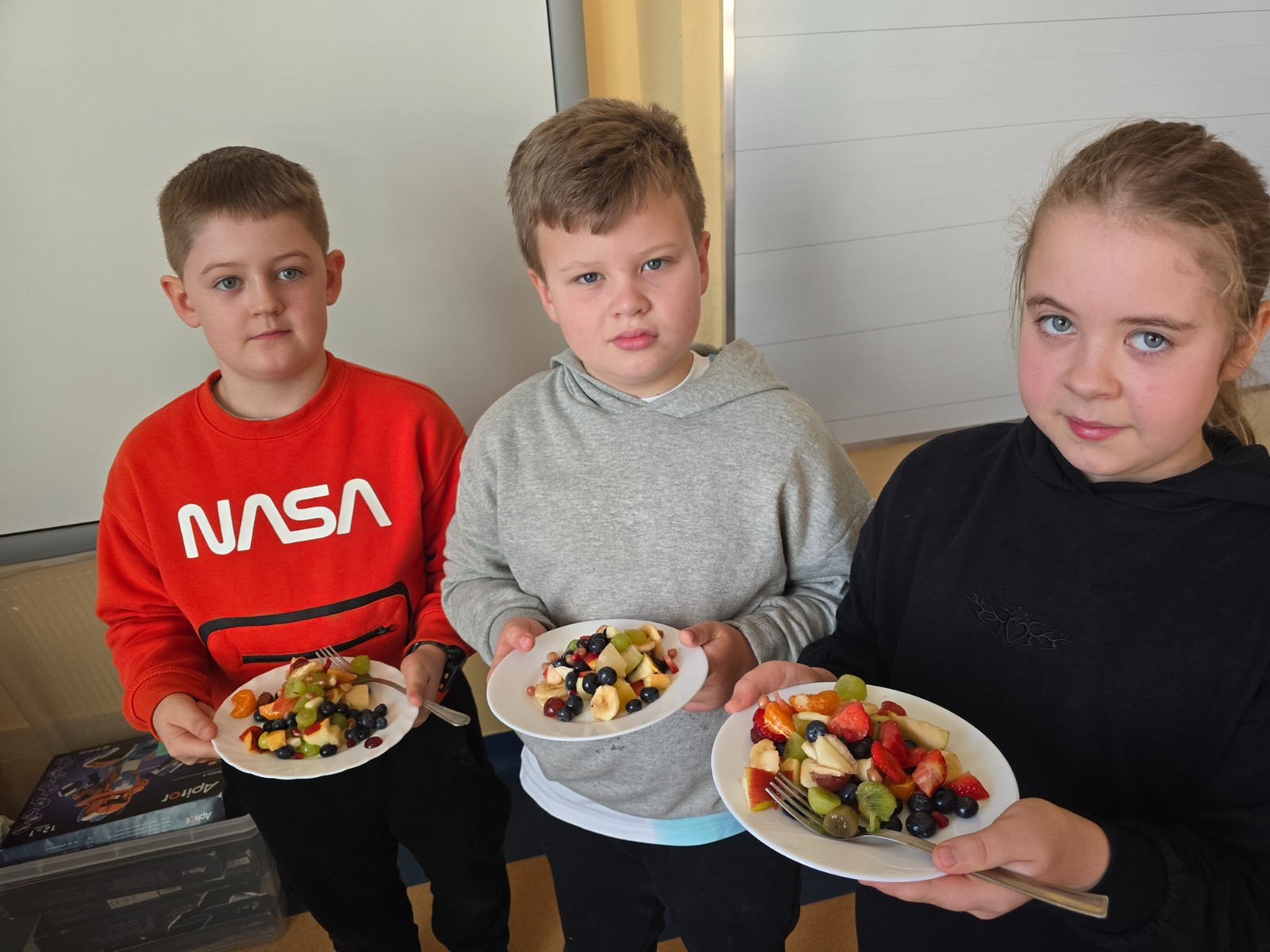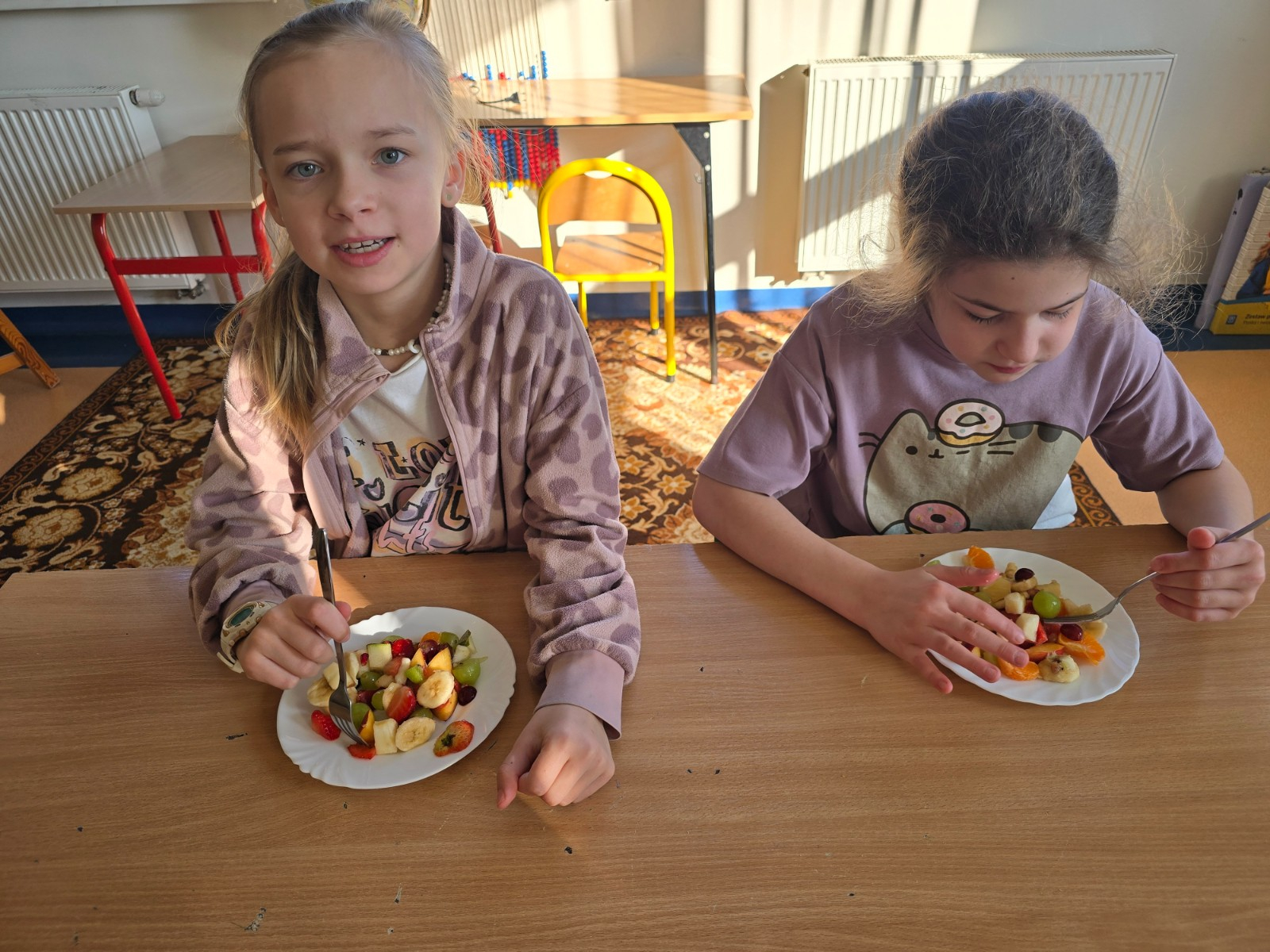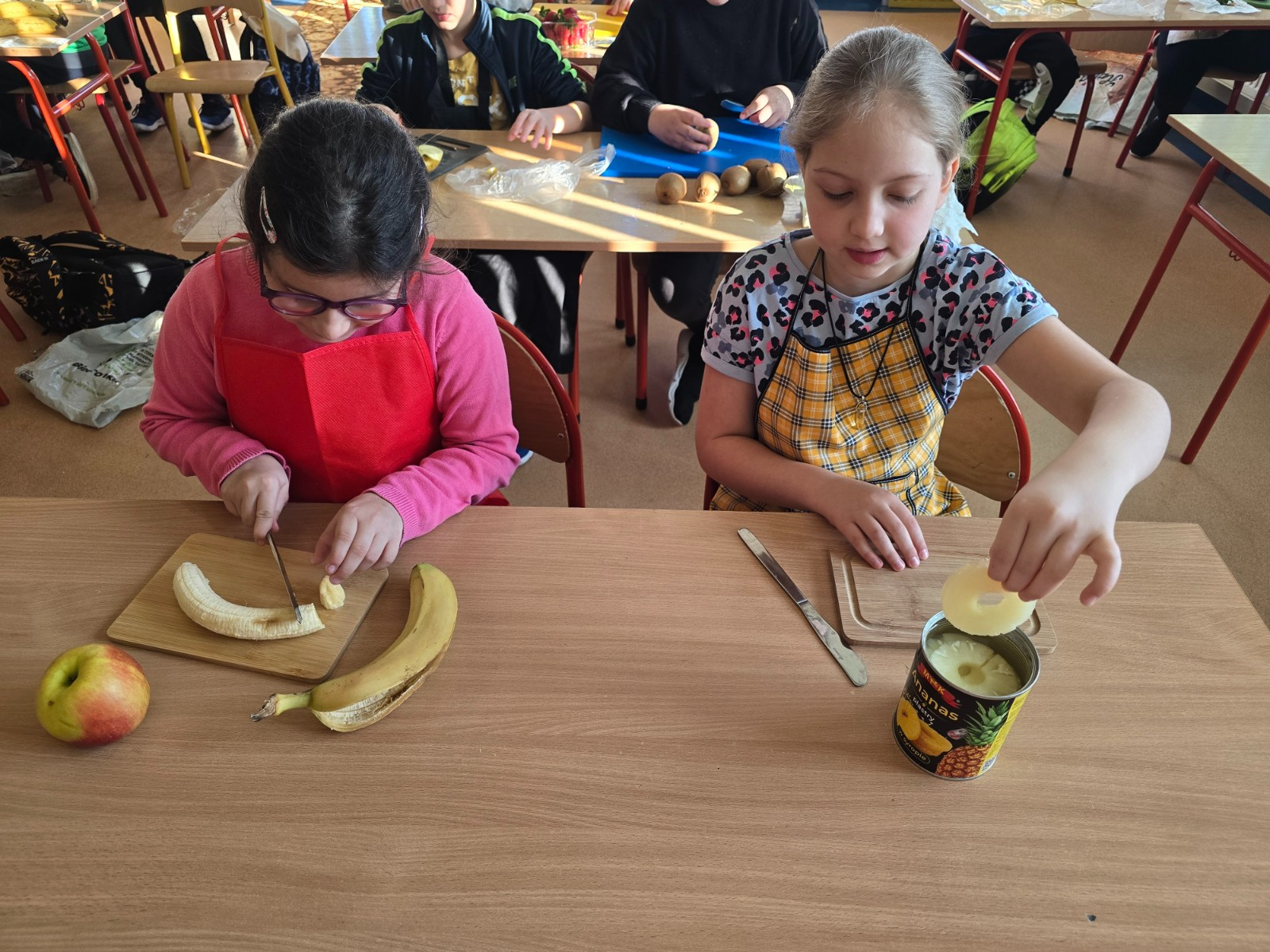 Klasa II w ramach projektu „Żyję zdrowo i kolorowo” przygotowała pyszną i zdrową sałatkę owocową. Współpraca między dziećmi była wzorowa – każdy chętnie angażował się w pracę, pomagając kolegom i koleżankom.