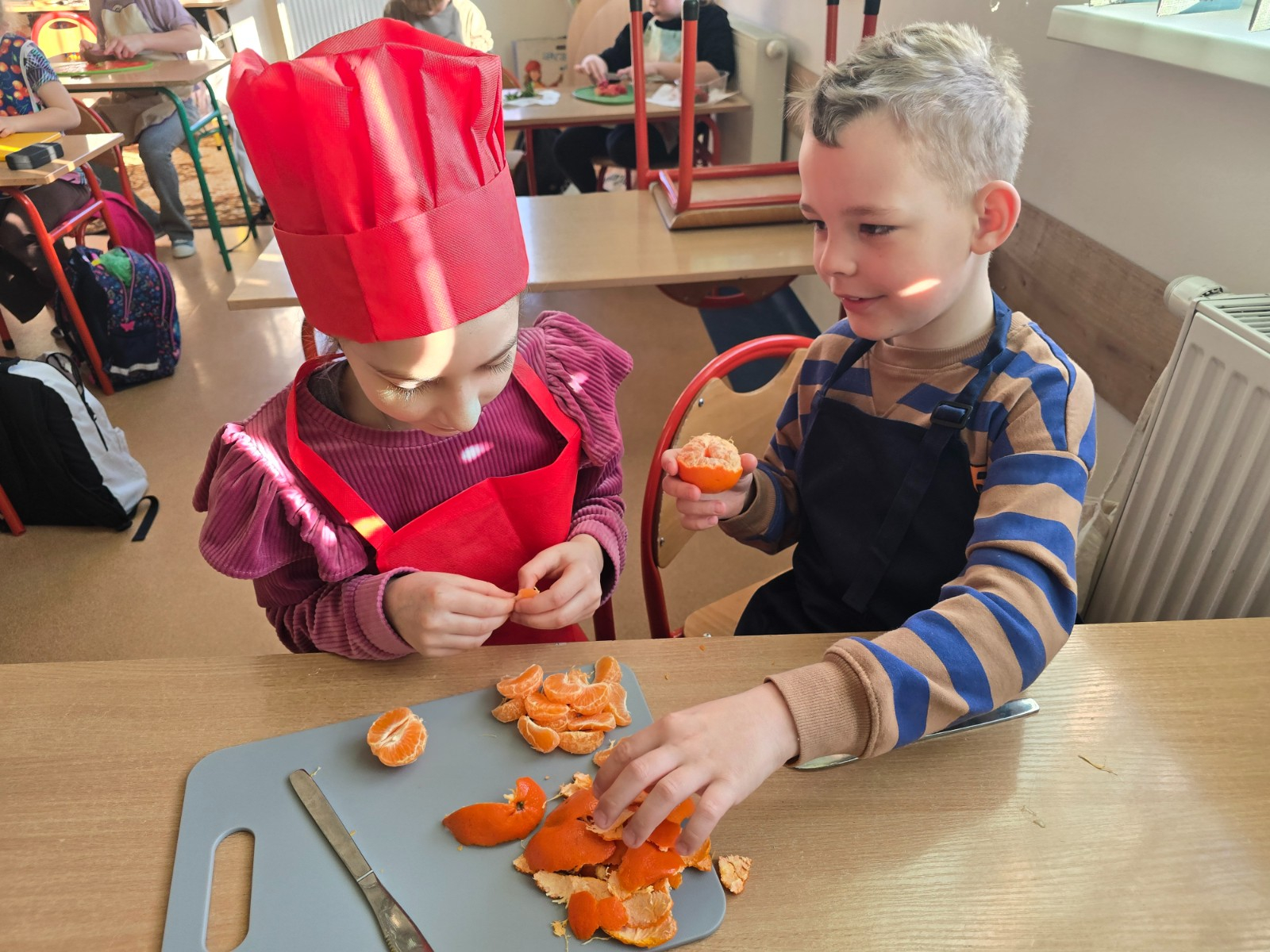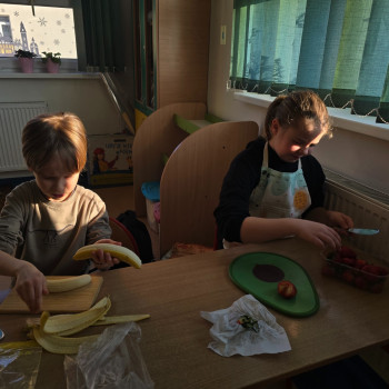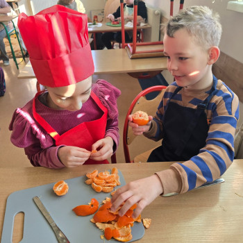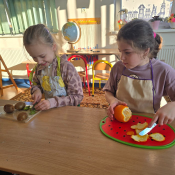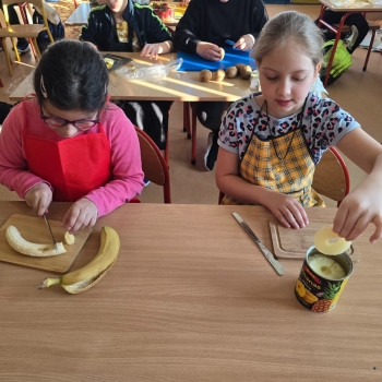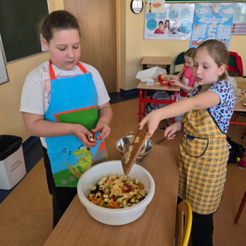 Podczas zajęć dzieci nie tylko rozwijały swoje umiejętności kulinarne, ale także uczyły się zasad zdrowego odżywiania oraz dbałości o higienę podczas przygotowywania posiłków. Wspólne działanie sprawiło im wiele radości, a efekty ich pracy były nie tylko smaczne, ale i bardzo kolorowe.