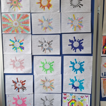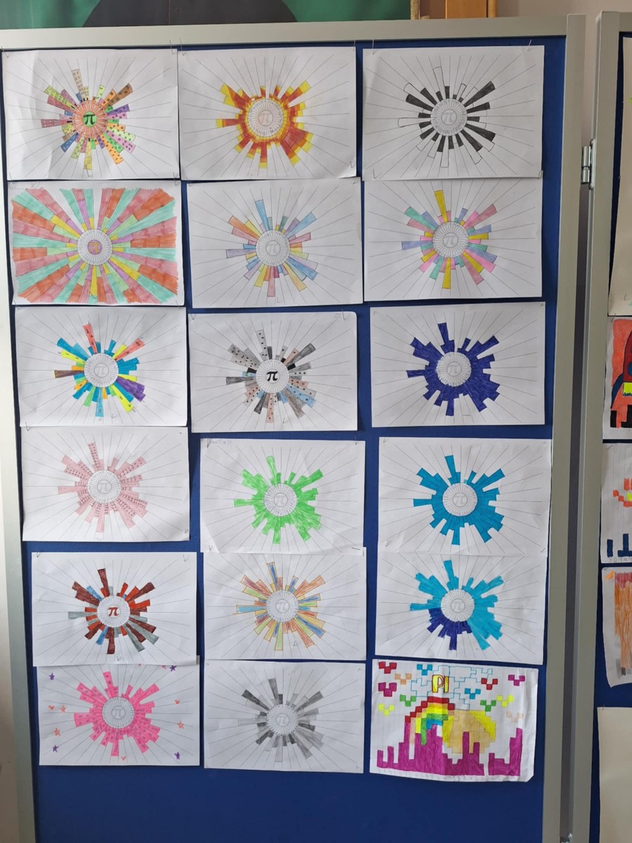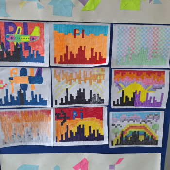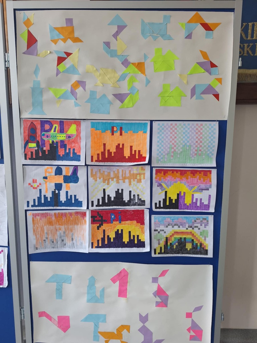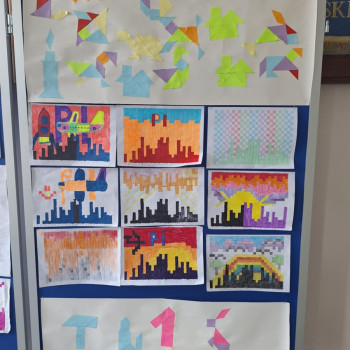 Nie zabrakło również aktywności związanych z liczbą Pi. Uczniowie tworzyli i ozdabiali specjalne „domki matematyczne”, w których kolejne elementy odpowiadały kolejnym cyfrom rozwinięcia liczby Pi. Dzięki temu mogli w ciekawy i przystępny sposób zapoznać się z tą niezwykłą liczbą.