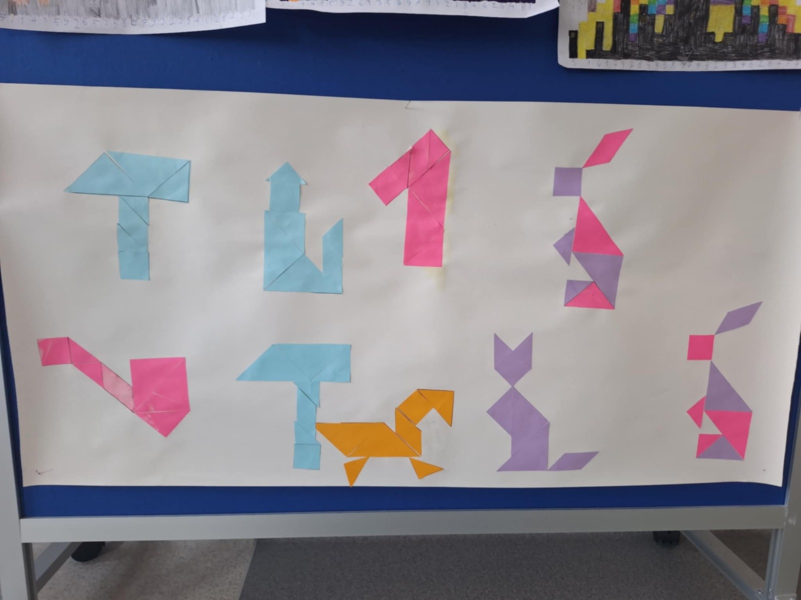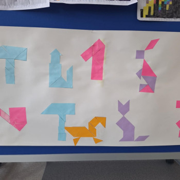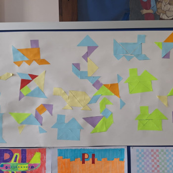 W poszczególnych klasach uczniowie pracowali z tangramami, układając z nich różnorodne figury, kształty oraz własne, pomysłowe kompozycje. Zadania te rozwijały wyobraźnię przestrzenną, logiczne myślenie oraz umiejętność współpracy.