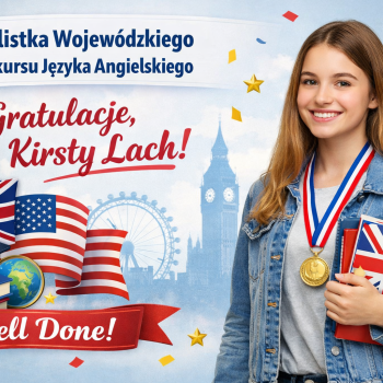 Serdecznie gratulujemy Kirsty tego sukcesu oraz życzymy dalszych osiągnięć. Jesteśmy dumni, że reprezentuje naszą szkołę na tak wysokim poziomie!